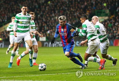 FC바르셀로나(스페인)가 리오넬 메시의 멀티골을 앞세워 셀틱(스코틀랜드)을 꺾고 유럽축구연맹(UEFA) 챔피언스리그 16강행을 확정지었다.
