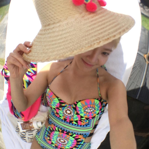 공개된 사진에는 화려한 패턴의 수영복을 입고 파나마 햇으로 포인트를 준 효연의 모습이 담겨있다.