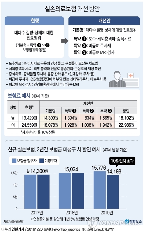 정부는 재직 중에만 보장되는 단체실손보험 가입자가 퇴직 후에 개인실손보험으로 연결해 보장받을 수 있도록 내년 하반기 중 연계 장치도 마련하기로 했다. 연합뉴스