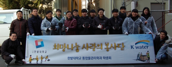 한밭대 통합물관리학과 학생들은 대전봉사체험교실과 연계해 지난 21일 혹한에 쪽방에서 겨울을 보내는 중구 중촌동 주민들에게 사랑의 연탄을 배달하는 봉사활동을 펼쳤다. 통합물관리학과는 한국수자원공사의 고졸사원 선취업·후진학 프로그램에 의해 지난해 개설된 학사학위 과정으로 학자금 전액을 수자원공사에서 부담, 학생들은 직장에서 받은 혜택을 사회에 환원하자는 취지로 방학 중 봉사에 나서고 있다. 대전봉사체험교실 제공
