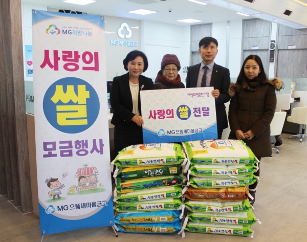 대전 으뜸새마을금고 비래지점(이사장 김원대)은 지난 20일 ‘MG 희망 나눔 사랑의 좀도리 운동’을 통해 모은 쌀 280㎏을 초록우산 어린이재단 대전종합사회복지관에 기탁했다. 대전종합사회복지관 제공