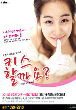 여자들이 원하는 사랑, 남자들이 원하는 사랑에 해답을 제시할 연극이 대전을 찾아왔다.극단 ‘향’이 마련한 ‘키스할까요’가 오는 27일 대전 가톨릭문화회관 아트홀에서 상연된다.로맨틱코미디 ‘키스할까요?’는 진정한 사랑을 꿈꾸는 정하니와 그녀가 사랑하는 치과의사 이준휘 사이에서 벌어지는 해프닝을 담아냈다. 진실된 사랑을 얻기위한 두 사람의 거짓말이 종국에는 어떤 결말을 낼지 관객들을 설레게할 예정이다. 문의 1599-9210