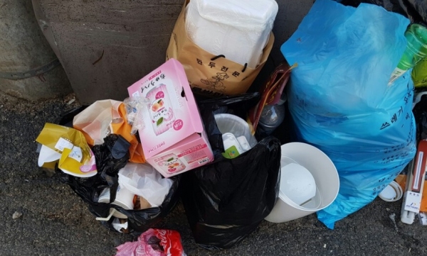 지난 24일 대전 모 대학 인근 원룸 밀집지역을 찾았다. 골목마다 쌓아놓은 쓰레기들이 눈에 띄었지만 종량제 봉투에 배출한 쓰레기를 찾긴 어려웠다. 대부분 일반 비닐봉지에 버리거나 먹다 남은 배달음식은 그릇 채 방치돼 있었다. 들여다본 봉지 안엔 각종 오물과 분리배출이 필요한 재활용 페트병까지 다양한 잡동사니들로 가득했다. 때마침 인근을 지나던 지역주민 김 모(52) 씨는 “하루 이틀도 아니고 참 지긋지긋하다”며 “지금은 그나마 겨울이라 다행이지만 여름만 되면 음식물 냄새가 말도 못한다”고 불만을 토로했다.