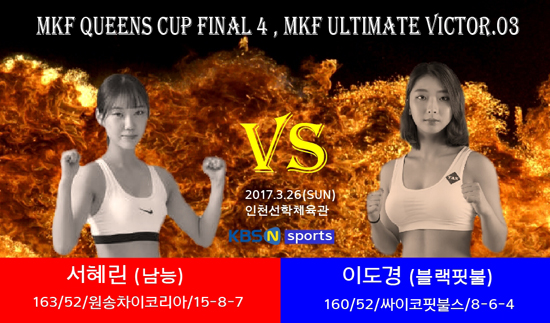 박상아(성남칸짐),김효진(TEM EMA)은 A조, 이도경(싸이코핏불스),서혜린(원송차이코리아)는B조에 각각 배당되었다. 이로서 A조 승자와 B조 승자가 결승에서 만나게 되며 최종 승자가 MKF QUEENS CUP을 가져가게 된다.