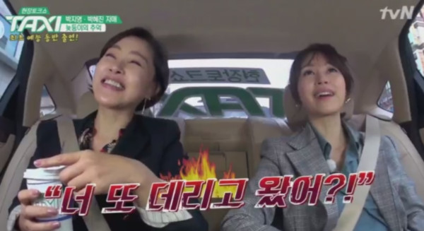 배우 박지영과 아나운서 박혜진이 택시에 탔다.