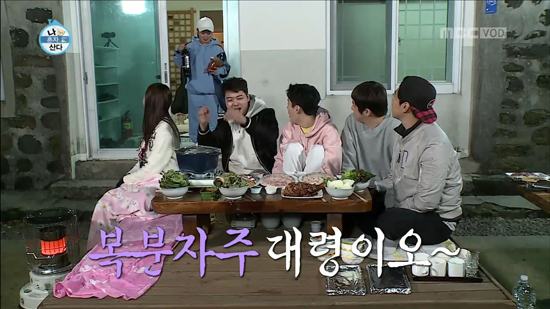 "묵은지는 고기도 있어야 하고"라는 박나래의 말에 당장 불판을 빌려 고기를 굽기 시작했다. 싱싱한 회를 본 헨리는 “혹시 우리가 잡은...”이라면서 마음 아파하면서도 입맛을 다셨다. 돼지고기, 생선회에 이어 멍게, 뿔소라까지 산해진미가 차려진 밥상에 회원들은 즐겁게 먹고 마셨다.