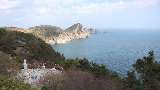 바닷가 천길 낭떠러지 위에 세워진 연화사의 부속암자, 보덕암. 이곳은 욕심을 버린 마음으로 간절하게 기도하면 이루지 못 할 일이 없다는 영험 있는 기도 도량으로 유명하다. 절벽 아래 보이는 바다와 해수관음보살은 빼어난 절경을 자랑한다.