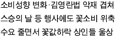 꽃집의 5월 특수가 사라져가는 양상이다. 꽃으로 축하를 대신하는 문화가 점점 사라지고 청탁금지법(김영란법) 여파도 확산하면서 꽃집 고객맞이가 예년만 못하다.
