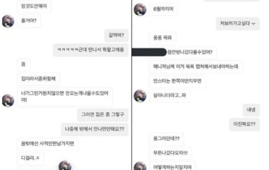 또 하민호는 "매니저에게 대화 목록을 보내야 하니까 채팅방을 잠깐 나갔다 오라"며 "나랑 메시지 주고받은 건 친구한테도 비밀로 하라"고 하며 이를 숨기려는 모습을 보였다.