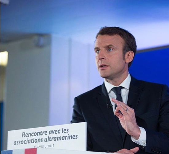 마크롱 지난해 장관 직에서 물러나 사회당을 탈당한 후 대선출마를 선어했다. 마크롱은 프랑스어로 '전진'이라는 뜻의 '앙 마르슈' 정당을 창당해 주요 양당인 사회당과 공화당의 당파 싸움으로 잊힌 중산층의 목소리를 듣겠다고 주장했다.