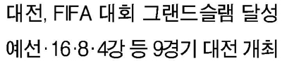 대한민국은 이번 대회 유치로 FIFA가 주관하는 4대 국제 축구 대회(FIFA 컨페더레이션스컵·FIFA 월드컵·FIFA U-17 월드컵·FIFA U-20 월드컵)를 모두 개최하는 그랜드 슬램을 달성하게 됐다. 6개 경기장에서 52경기가 열린다. 20일부터 내달 11일까지 열리는 대회 가운데 대전월드컵경기장선 B조 예선과 16·8·4강전 등 9경기가 펼쳐진다. 대힌민국팀의 경우 조2위로 예선을 통과할 경우 대전에서 8·4강을 치른다. 조3위로 통과하면 대전에서 16강(70%)을, 이후 전주에서 8강을 승리할 시 대전에서 다시 4강을 치른다.