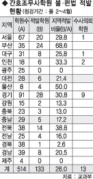 시도별 학원수 대비 적발 현황을 비교하면 대전은 21.4%(전체 학원 28곳 중 6곳), 충남은 17.2%(29곳 중 5곳)에 달했다.