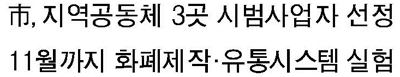 이 같은 기초체력을 바탕으로 시가 지역 순환경제와 협력적 소비문화 확산에 나섰다. 시는 지역화폐 활성화를 위해 연말까지 사업비 1200만 원을 투입하기로 하고 지난 17일 공모를 거쳐 중구 2개(Peto사회적협동조합, 스쿨B), 서구 1개(서클공동체) 등 세 곳의 지역 공동체를 선정했다. 해당 공동체는 300만 원의 사업비와 함께 올해 11월까지 지역화폐 공동체 학습 및 컨설팅, 화폐제작·시스템 구축 등의 지원을 받는다.