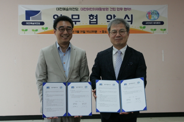 대전 예술의 전당과 ㈔토닥토닥이 지난달 31일 대전예당에서 대전어린이재활병원 설립과 장애아동 가족의 문화 예술 활동 증진을 위한 업무협약을 체결했다.