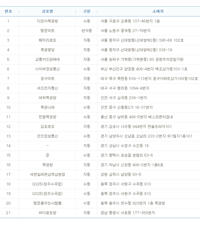 - 751회 로또 1등 당첨점은 어디?…자동4·반자동2·수동2