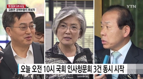 7일 오전 10시부터 강경화 외교부 장관 후보자, 김이수 헌법재판소장 후보자, 김동연 경제부총리 겸 기획재정부 장관 후보자에 대한 인사청문회가 동시에 진행된다.