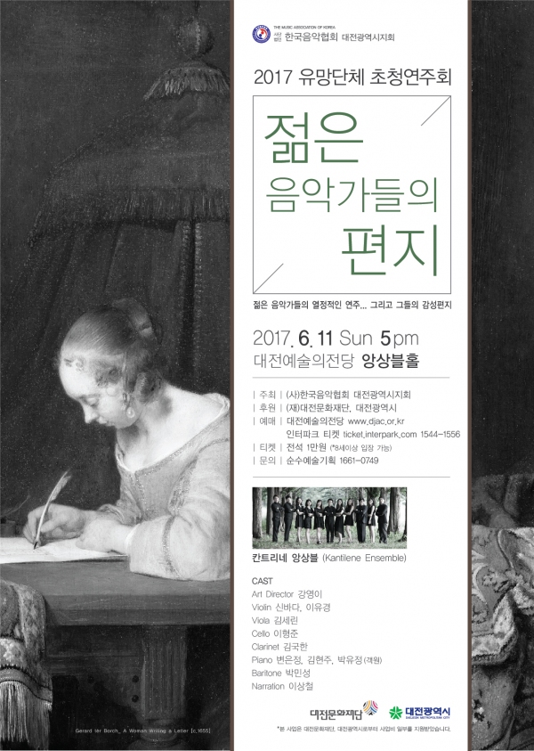 2017 유망단체로 선정된 대전 칸트리네 앙상블이 오는 11일 오후 5시 대전예술의전당 앙상블홀에서 2017 유망단체 초청연주회 ‘젊은 음악가들의 편지’를 개최한다.