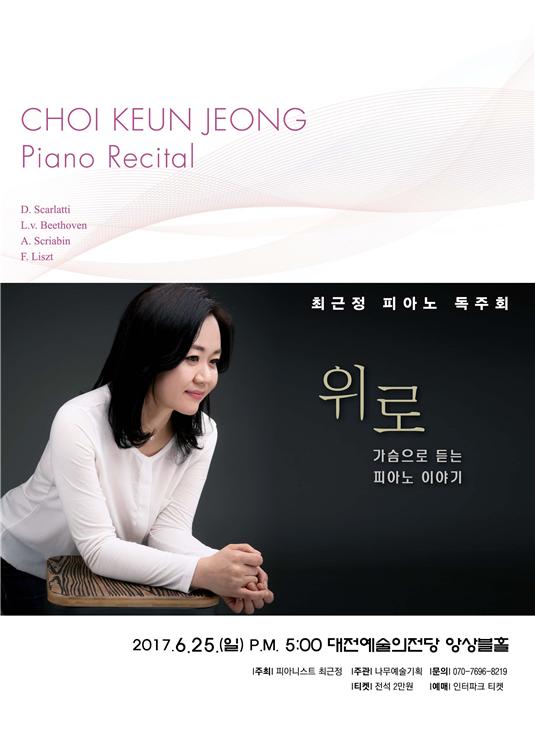 피아니스트 최근정이 오는 25일 오후 5시 대전예술의전당 앙상블홀에서 ‘위로: 가슴으로 듣는 피아노 이야기’라는 주제로 피아노 리사이틀을 연다.