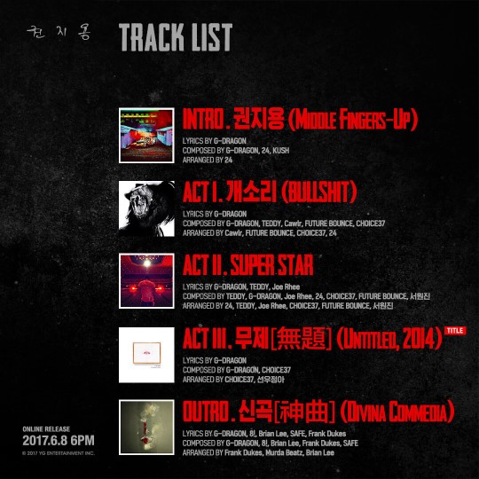 한편, 지드래곤은 10일 서울 마포구 상산동 서울월드컵 경기장에서 열리는 솔로 월드투어 '액트 Ⅲ, 모태'에서 신곡의 라이브 무대를 처음 선보인다.