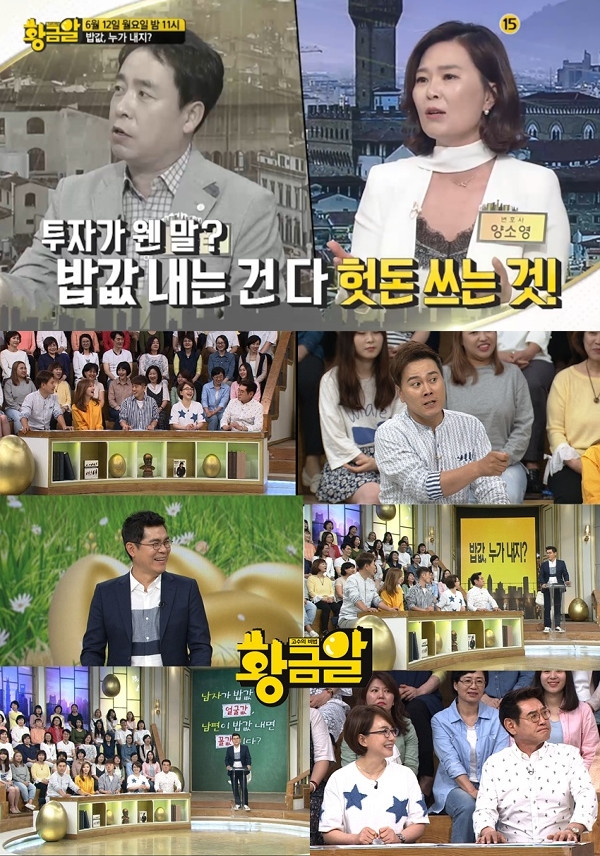 오늘(12일) 방송되는 MBN <황금알>에서는 '밥값, 누가 내야 할까?' 편을 통해 희대의 난제를 고수들과 함께 해결해본다. 계산대 앞에만 서면 누가 낼지, 어떻게 내야 할지 고민하는 이들을 위해 고수들이 직접 노하우를 전수할 예정. 특히 김영란법 시행 이후 밥값 계산 풍속도는 어떻게 변했는지도 살펴본다.