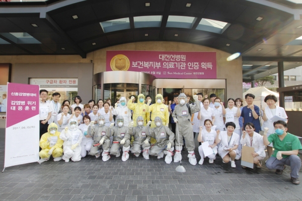 대전선병원이 15일 응급의료센터와 귀코목센터, 선별진료소 등에서 감염병 위기 대응훈련을 실시했다.