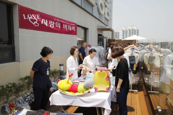 대전선병원은 19일 직원식당 테라스에서 취약계층 암, 심뇌혈관 등 중증질환을 겪고 있는 취약계층을 돕기 위한 사랑의 바자회를 열었다. 바자회에는 임직원들이 기부한 의류, 잡화, 가전 등 총 500여 점의 물품이 모아져 판매됐으며 수익금 전액은 취약계층 의료비 지원에 쓰인다. 판매되지 않은 물품들은 아름다운 가게에 기부할 예정이다.