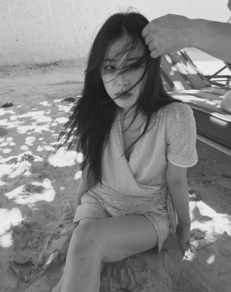 공개된 사진 속 설리는 모래사장에 앉아서 바람에 흩날린 머리카락 정리를 받고 있는 모습이 담겼다. 특히 가슴골이 파진 반짝이 의상을 입고 앉아 있는 설리의 도발적인 자태가 남심을 흔든다.