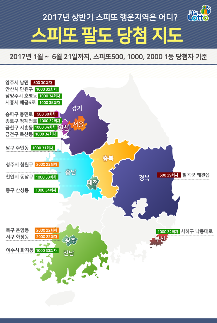 [나눔로또] '스피또 팔도 당첨 지도' 2017년 상반기 스피또 행운 지역은 어디?