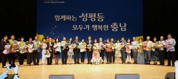 이날 행사는 안희정 충남지사와 윤석우 도의회 의장, 김옥수 협의회장, 도내 여성단체 회원 등 1000여 명이 참석한 가운데 여성헌장 낭독과 시상, 양성평등 퍼포먼스, 화합한마당 등의 순으로 진행됐다.