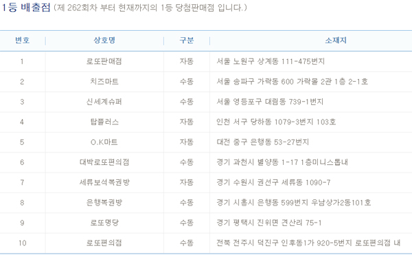 - 761회 로또 1등 당첨점은 어디?…자동4·수동3
