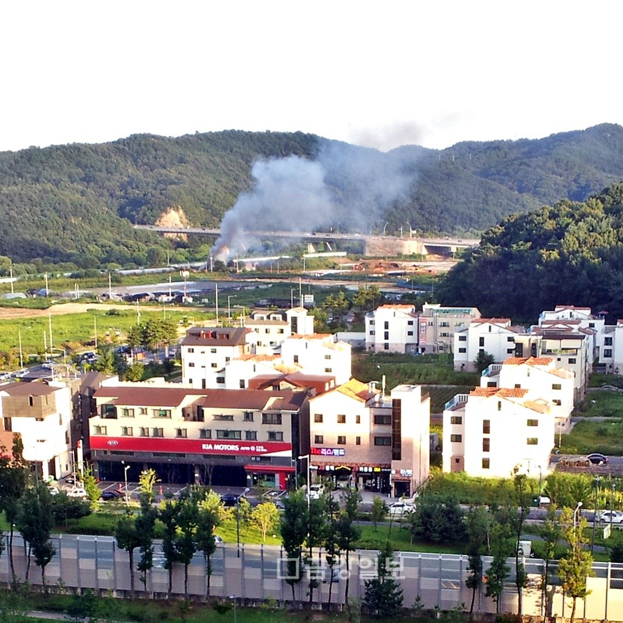 12일 오후 6시 15분쯤 모습입니다. 대전 유성구 원신흥동인데요, 도솔대로와 멀지 않은 도안호수공원(갑천친수구역) 예정지에 또 불이 났습니다. 다행히 소방당국의 신속한 대처로 10여분만에 진화됐습니다. 그런데 이 곳에선 화재가 잦은 것 같습니다. 갑천변 도안호수공원 예정지에서는 지난 3월과 4, 5월에도 불이 났었습니다. 올 들어서만 4번째군요. - 독자 K -
