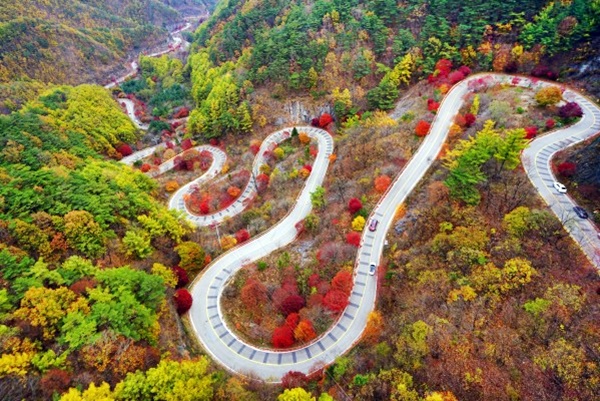 대상-단양 보발재 '굽이굽이 단풍길' , 금상 - 고창 동림호수 '가창오리 날다'