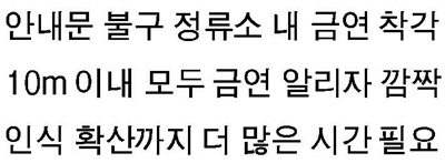 시는 지난 8월부터 정류소 내 금연구역 안내표지판 부착, 지하철안내방송, 신문·방송·소식지 등 언론매체 홍보 등을 통해 집중 홍보했지만 시민들이 인지하기엔 시간이 부족했다는 지적도 나온다.