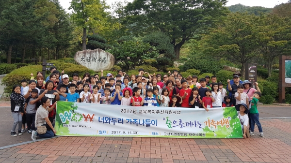 대전서부교육지원청(교육장 배영길)은 지난 15일 전북 완주군에 위치한 고산자연휴양림과 대아수목원에서 교육취약 학생 및 가족 100여 명을 대상으로 ‘WOW 너와두리 가족나들이’ 행사를 개최했다.