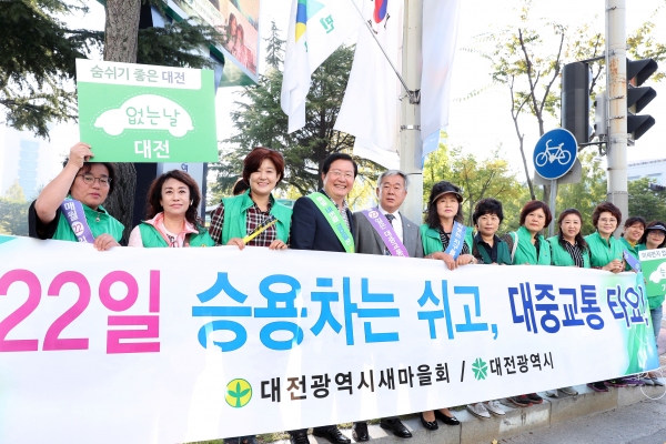 시청네거리에서는 대전지방경찰청과 교통안전공단 중부지역본부, 도로교통공단 대전충남지부, 먼저가슈 교통문화운동시민모임(회장 황인규)회원 등 140여 명이 참여해 시민들에게 교통질서 지키기 및 대중교통이용의 실천을 홍보했다. 동구 판암역네거리 및 16개 주민센터, 중구 목양초 외 2개소, 서구 큰마을 네거리 및 까치네거리, 유성구 반석초, 대덕구 오정동 한남대오거리 등 5개 자치구 20여 개 소에서 교통관련 유관기관 및 회원들과 함께 캠페인을 전개했다.