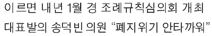 내년 1~2월 조례규칙심의회…송덕빈 의원 “폐지위기 안타까워”