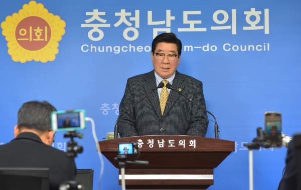 윤석우 충남도의회 의장은 26일 의회 브리핑룸에서 의정결산 기자회견을 열고 지난 1년간 도민 복리 증진과 지역경제 활성화에 앞장서 왔다고 평가했다.