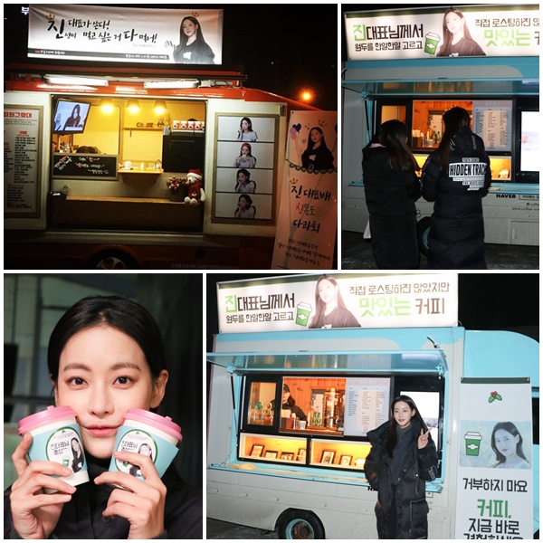 오연서 팬클럽은 지난달에 이어 21일 경기도 안성시에 있는 tvN 새 토일드라마 '화유기'(극본 홍정은 홍미란, 연출 박홍균) 세트장에 커피차를 선물했다. 커피차에는 '진대표가 쏜다! 먹고 싶은 거 다 먹어', '거부하지마요 커피, 지금 바로 경험하세요' 등 센스 넘치는 문구와 함께 다양한 음료가 준비돼 눈길을 끈다.