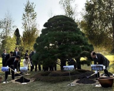 남측 이재정 전 통일부장관과 북한 김영남 최고인민회의 상임위원회 위원장이 남한에서 공수된 반송(盤松, 접시를 엎어놓은 모습의 최고 소나무)을 함께 기념식수 한 것.