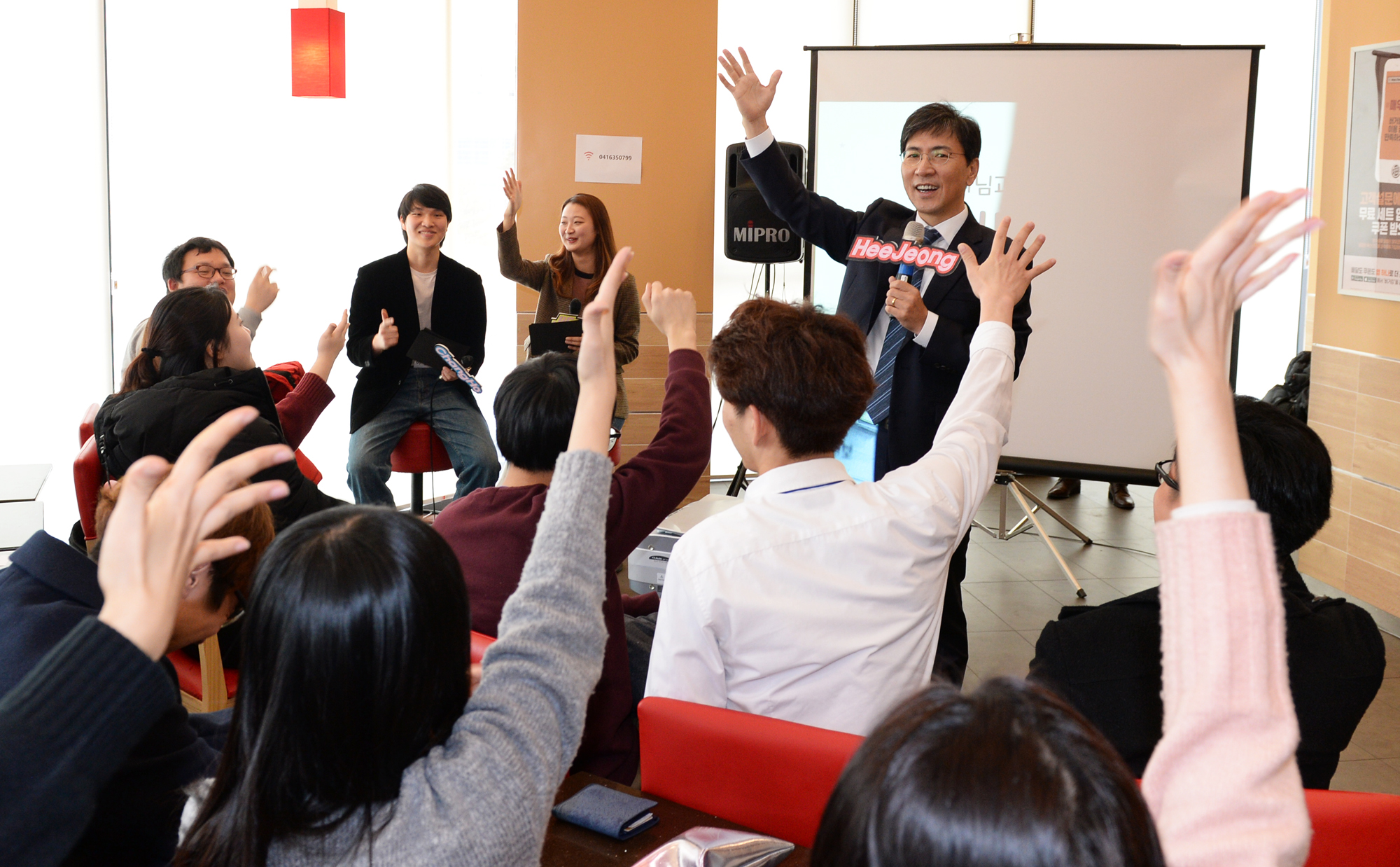 안희정 충남도지사는 31일 내포신도시에 있는 한승갤러리빌딩 2층에서 ‘겨울방학 대학생 아르바이트 간담회’를 열었다. 이날 행사에는 도청과 직속기관, 사업소에서 행정보조 업무를 하고 있는 아르바이트 대학생 45명이 참석해 안 지사와 격의 없는 토론을 했다.