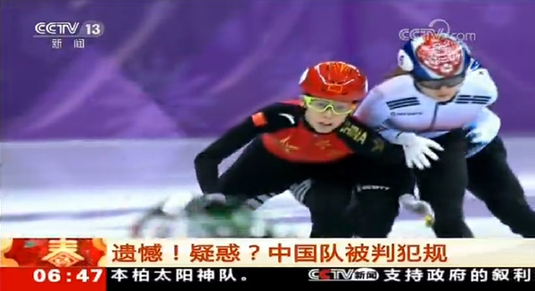 CCTV는 이어 중국 출신 국제심판의 평론을 통해 "이번 경기에서 캐나다 선수의 터치 장면, 한국 선수가 넘어지는 장면, 중국 선수가 한국 선수를 추월하며 손을 쓰는 장면 등 여러 규정 위반이 나왔다"면서 "규정에 따른 판단은 맞지만, 어떤 위반 항목은 중시하고 어떤 항목은 중요하게 판단하지 않는 것은 의문이 남는다"고 전했다.