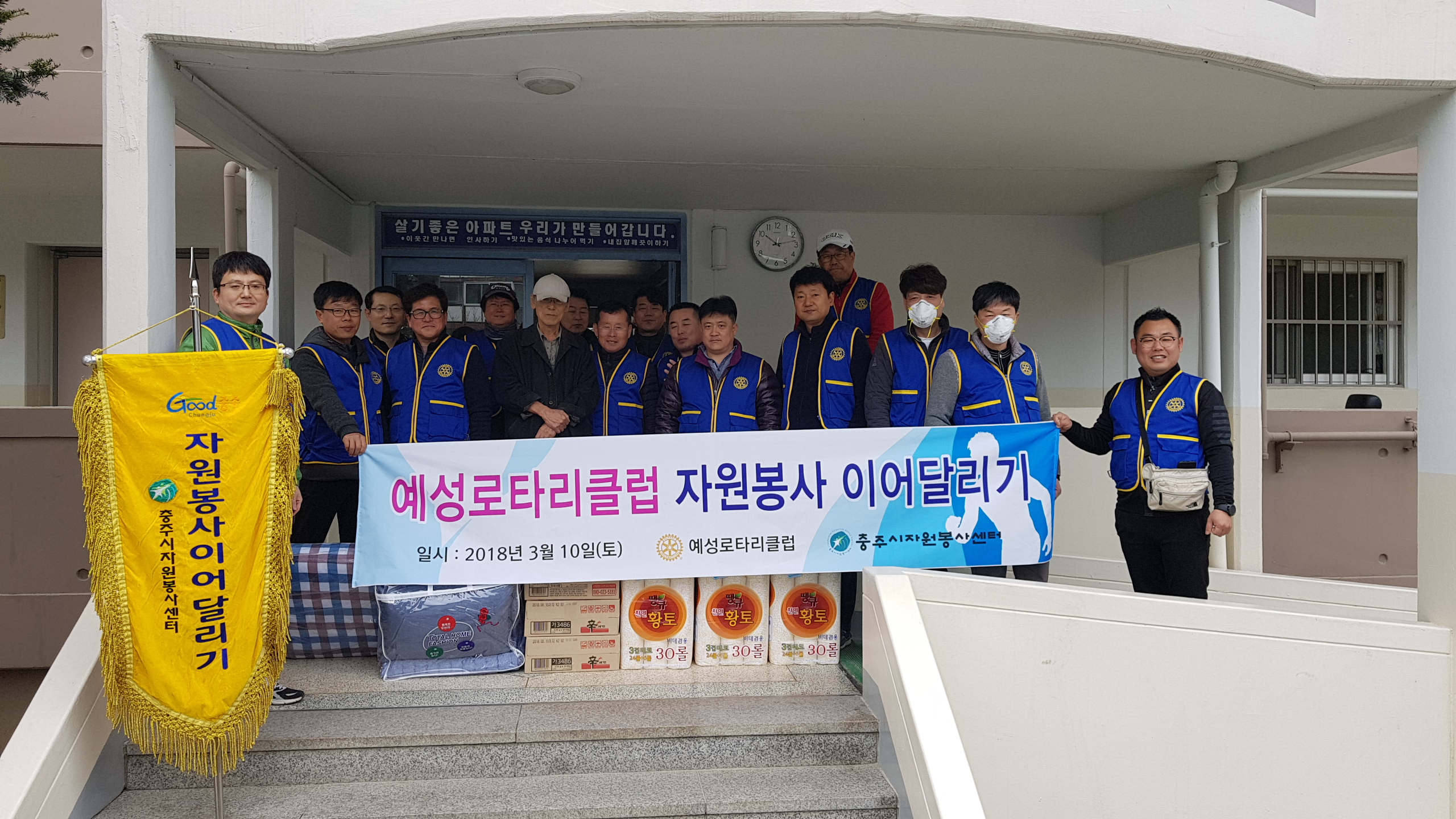 발대식에서 예성로타리클럽은 첫 주자로 이어달리기 기를 전달 받아 이날 곧바로 봉사활동에 나선 것이다.