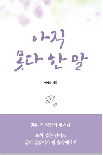 이지숙 작가가 첫 수필집 ‘아직 못 다한 말’(도서출판 지식과 감성)을 펴냈다. “초등학교 4학년 때 은사님의 사랑이 담긴 칭찬 한 마디가 오늘의 나를 만들었다”는 이 작가는 이번 신간에 그가 지금껏 인생의 터널을 지나오며 느꼈던 감정을 1부 ‘사랑과 추억의 강’, 2부 ‘친구의 장’, 3부 ‘부모와 자식의 장’, 4부 ‘행복의 장’, 5부 ‘이별의 장’, 6부 ‘결혼과 가족의 장’, 7부 ‘미학의 장’, 8부 ‘인생의 장’, 9부 ‘반려견의 장’, 10부 ‘진정한 아름다움의 장’까지 65편의 에세이로 녹여냈다. 꼭 하고 싶었지만 차마 하지 못했던 말, 부모가 되면서 느낀 사랑의 감정, 누군가와 헤어지며 느끼게 되는 이별의 슬픔 등 살아오며 겪은 소소한 인생사의 희로애락이 고스란히 담겨 있다. 짧지만 그 속에 담긴 의미를 찾게 될 독자들이 인생을 산다는 것엔 나름의 이유가 있음을 깨달았으면 하는 개인적인 바람도 담겼다.