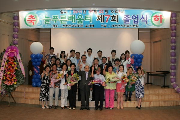 서천군 자원봉사센터 부설 늘푸른 배움터(교장 정장로)가 지난 3일 문예의 전당에서 제7회 졸업식을 가졌다