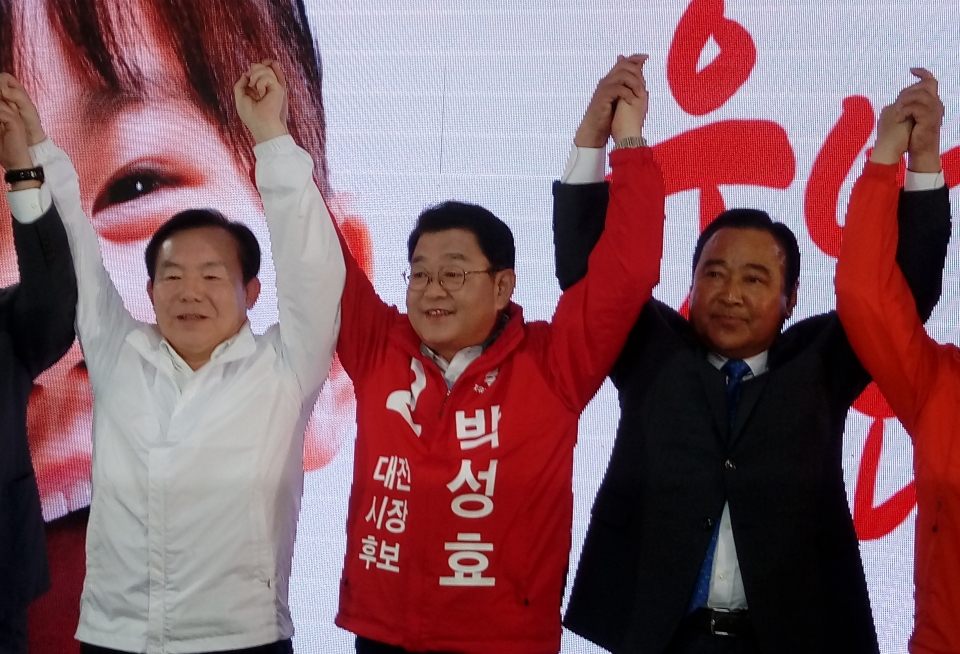 그는 “권선택 전 대전시장과 안희정 전 충남지사는 지난 4년간 뭐했나. 참으로 답답한 노릇이다. 이건 보통 문제가 아니다. 냉정하고 이성적으로 판단해야 한다. 촛불 정국에 국민들의 가치관이 전도됐는데 언제 냉정함을 찾을지 걱정스럽다. 얼마 남지 않은 지방선거에서 어떻게 하면 미래를 위해 후회 없는 선택을 할 수 있을지 설득해야 한다”라며 중학교·대학(대전중-성균관대) 후배이자 행정고시 후배이고, 한나라당 시절부터 같은 당에서 정치를 해 온 박 후보 지지를 호소했다.
