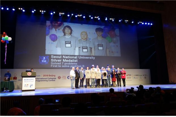 4월 19일 중국 북경대에서 개최된 세계 최대 규모 프로그래밍 경시대회인 ‘제42회 2018 국제 대학생 프로그래밍 경시대회(2018 ACM-ICPC World Finals)’에서 서울대 팀이 은메달을 수상했다고 과학기술정보통신부와 한국정보화진흥원은 밝혔다.