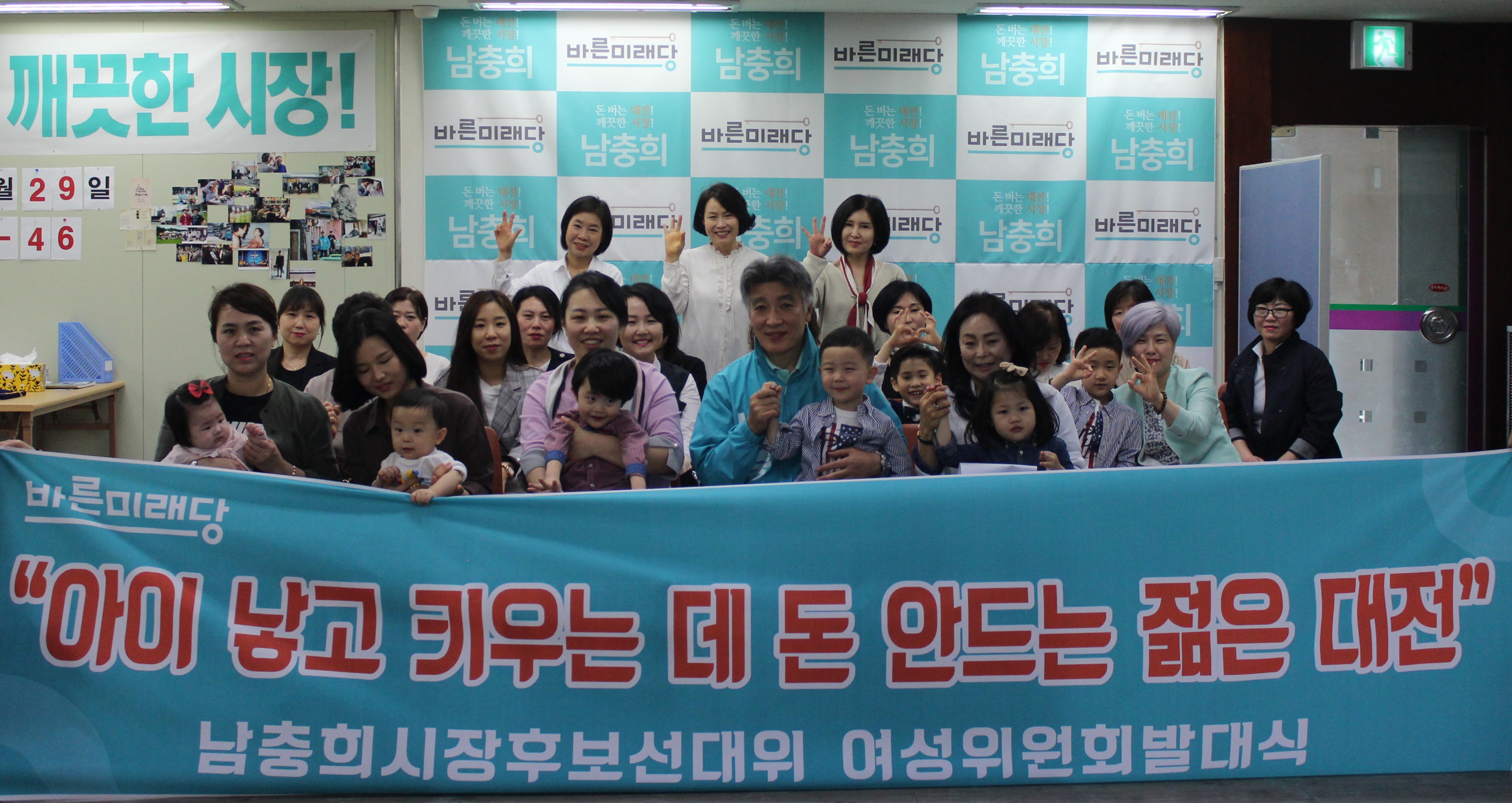 바른미래당 남충희 대전시장 후보 선거대책위원회는 29일 서구 둔산동 선거사무실에서 여성위원회 발대식을 가졌다. 여성위원들은 이 자리에서 남 후보의 ‘유치원 무상교육’ 정책을 지지한다고 밝혔다. 남충희 후보 제공