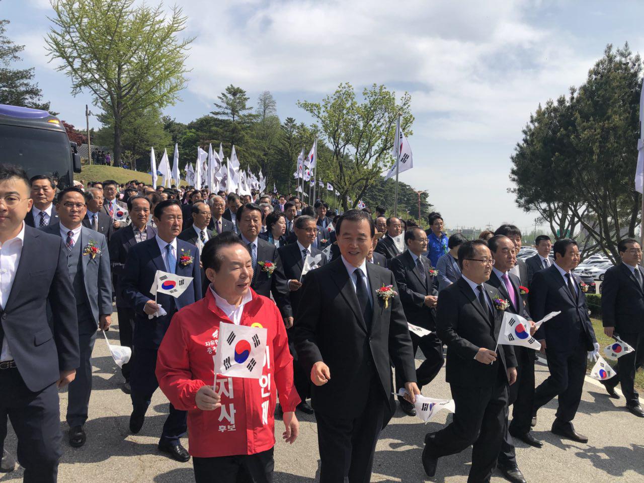 자유한국당 이인제 충남지사 후보는 홍문표 중앙당 사무총장 및 충남도당 주요 당직자들과 함께 지난 29일 예산군 덕산면 시량리 매헌 윤봉길 의사 생가와 충의사를 방문, 윤 의사 4·29 상해의거 제86주년 기념식에 참석했다. 이인제 후보 제공