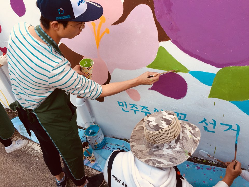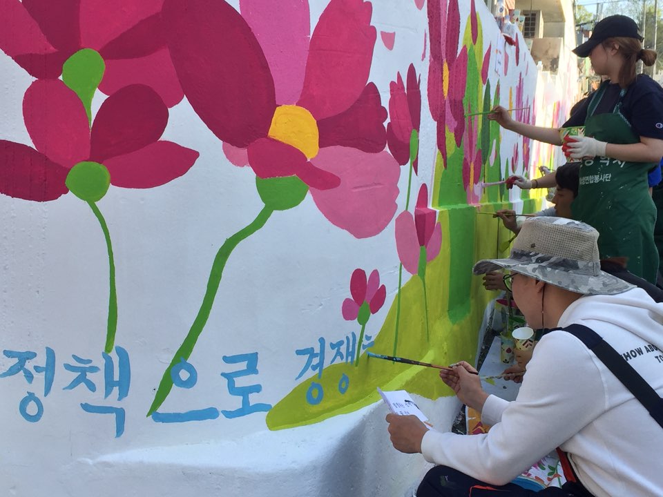 대전시선거관리위원회는 6·13 지방선거를 앞두고 지역민들의 선거에 대한 관심과 참여를 높이기 위해 지난 28일 중구 석교동 주택가에서 ‘원도심에서 꽃피는 아름다운 선거’ 벽화 그리기 행사를 가졌다. 대전시선관위 제공