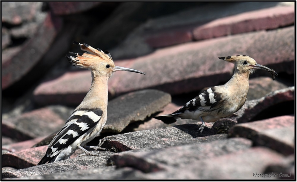 보통 후투티는 5~8마리 알을 낳는다. 조용하던 주변이 어미 새가 먹이를 물고 오면 새끼들의 소리로 시끄럽기 시작해진다. 서로 자기한테 밥 달라고 큰소리를 내는 것이다. 이 시기에는 먹이를 많이 먹으면 빨리 성장할 수 있다. 자연은 어찌될지 모르는 양육강식의 세계이기 때문이다.
